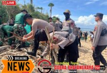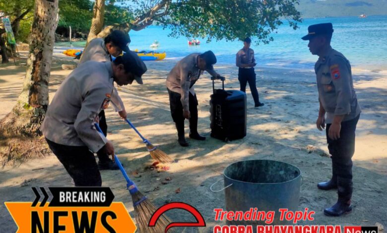 Gotong Royong Polres Trenggalek Bersihkan Area Pantai Mutiara Watulimo