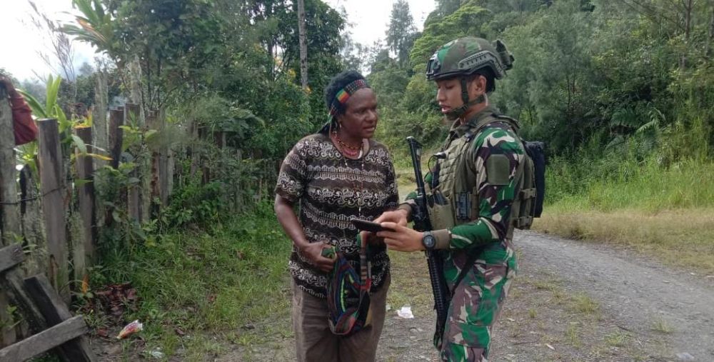 Meski menghadapi ancaman teror dari Organisasi Papua Merdeka (OPM), prajurit Satgas Yonif 509 Kostrad yang bertugas di Pos Titigi tetap melaksanakan patroli rutin dan terus berinteraksi dengan masyarakat Kampung Titigi. Rabu (24/07/2024)