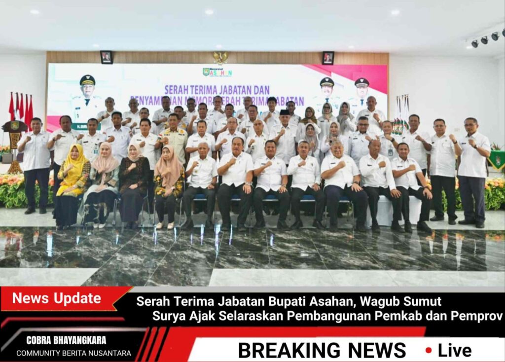 Hal tersebut disampaikan Surya kepada Bupati Asahan Taufik Zainal Abidin dan Wakil Bupati Asahan Rianto, pada acara serah terima Jabatan dan Penyampaian Memori Serah Terima Jabatan Bupati dan Wakil Bupati Asahan yang berlangsung di Aula Melati Kantor Bupati Asahan Rabu, (05/03/2025).