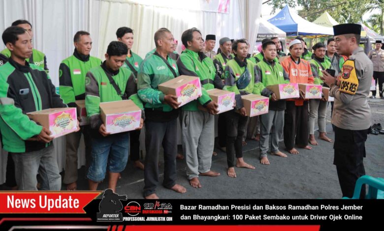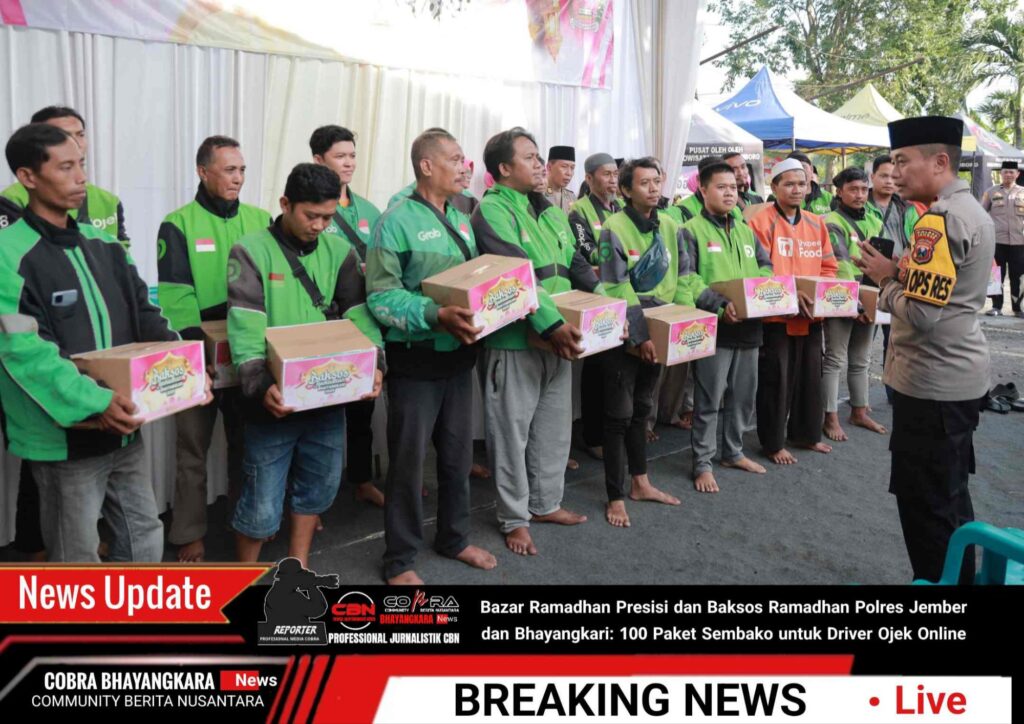 Bazar Ramadhan Presisi dan Baksos Ramadhan Polres Jember dan Bhayangkari: 100 Paket Sembako untuk Driver Ojek Online