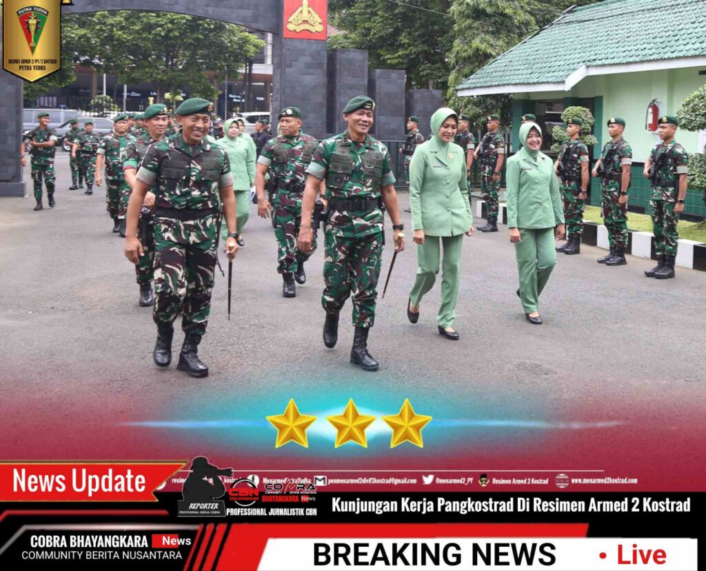 Malang – Panglima Kostrad (Pangkostrad) Letjen TNI Mohammad Fadjar, MPICT., didampingi Ketua Persit KCK PG Kostrad, Ibu Ira Fadjar, melaksanakan kunjungan kerja ke satuan kostrad malang raya yaitu Menarmed 2 Kostrad, Yonarhanud 2 Kostrad serta Yonbekang 2 Kostrad pada hari Senin (24/03/2025).