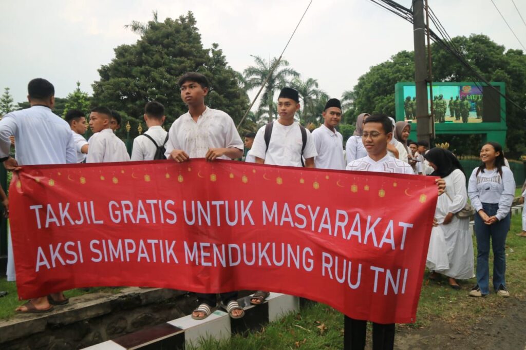 Acara pembagian takjil tersebut dihadiri oleh ratusan peserta dari berbagai latar belakang, termasuk mahasiswa, aktivis, dan elemen masyarakat umum. Mereka bersatu dalam satu tujuan yaitu memperkuat peran TNI sebagai penjaga kedaulatan negara melalui dukungan terhadap RUU TNI. Para peserta juga membawa poster yang berisi pesan-pesan dukungan terhadap RUU TNI.