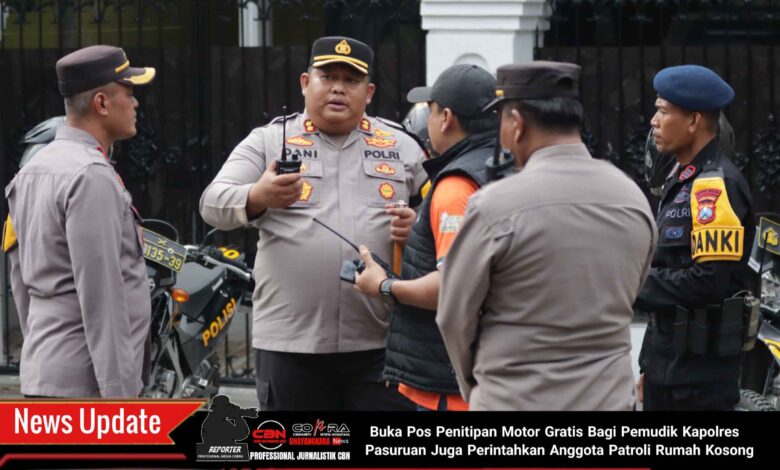 Buka Pos Penitipan Motor Gratis Bagi Pemudik Kapolres Pasuruan Juga Perintahkan Anggota Patroli Rumah Kosong