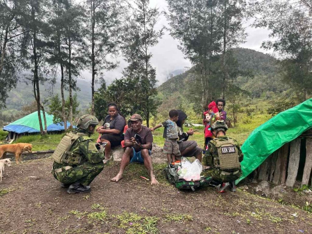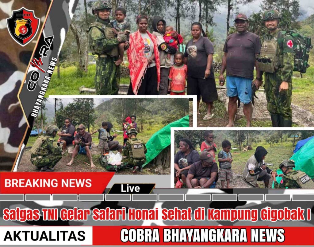 Satgas TNI Yonif 700 Wira Yudha Cakti, yang tengah bertugas di wilayah Papua, melaksanakan kegiatan Safari Honai dan pelayanan kesehatan kepada warga Kampung Gigobak I, Distrik Sinak, Kabupaten Puncak. Kegiatan ini dipimpin oleh Sertu Awaludin, sebagai bentuk kepedulian TNI terhadap kesejahteraan masyarakat di daerah perbatasan. Sabtu (29/03)