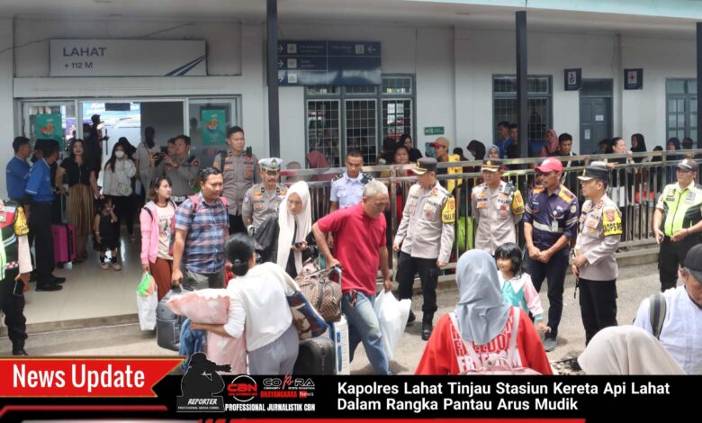 Dalam rangka persiapan menghadapi arus mudik Lebaran 2025, Kapolres Lahat, AKBP Novi Edyanto SIK.MIK, yang di dampingi Waka Polres Kompol Liswan Nurhapis SH, Kabag Ops Kompol Idham Haris Sugiono SE.MM, Kasat Samapta AKP Hipni SH, Kasat Lantas Iptu Dr.Jhoni Albert SH.MM,MSI.MH, melakukan peninjauan ke Stasiun Kereta Api Lahat. Kunjungan tersebut merupakan bagian dari operasi ketupat Musi 2025 untuk memastikan kelancaran dan keamanan perjalanan para pemudik yang menggunakan transportasi kereta api