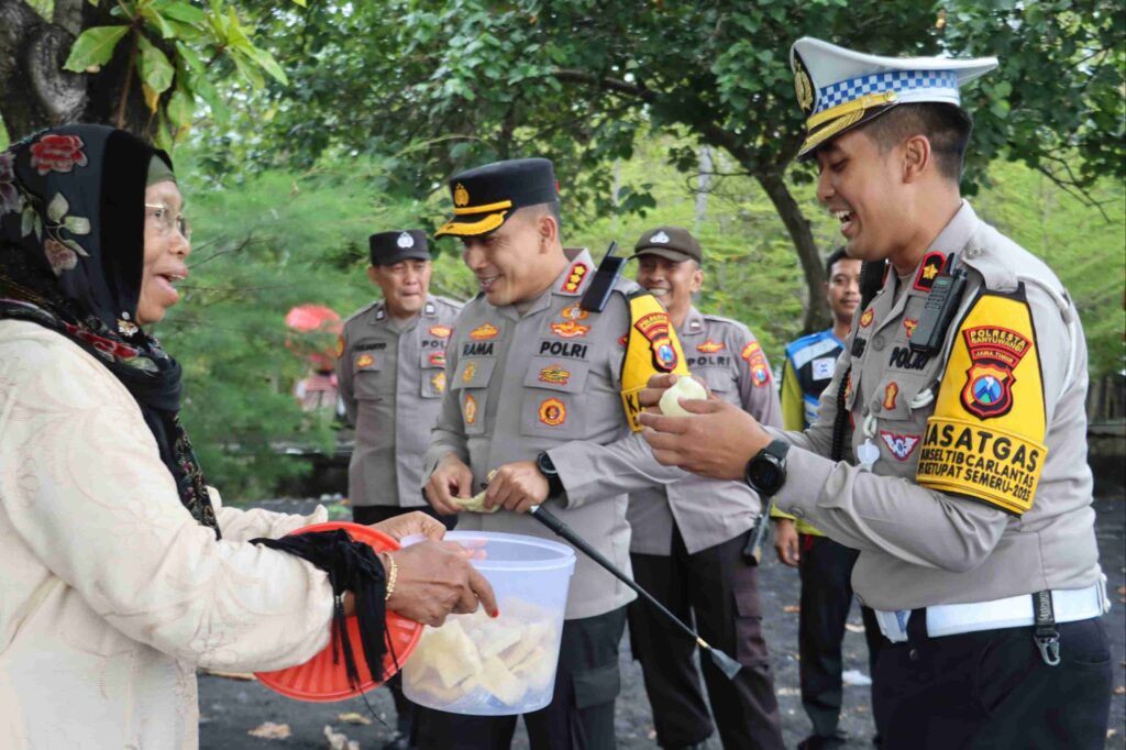 Dengan sikap humanis dan penuh keakraban, Kapolresta Banyuwangi berinteraksi langsung dengan masyarakat, memberikan salam, serta berbincang santai dengan para pengunjung.
