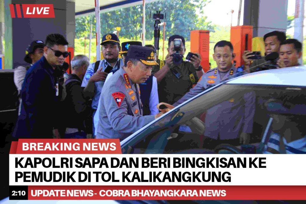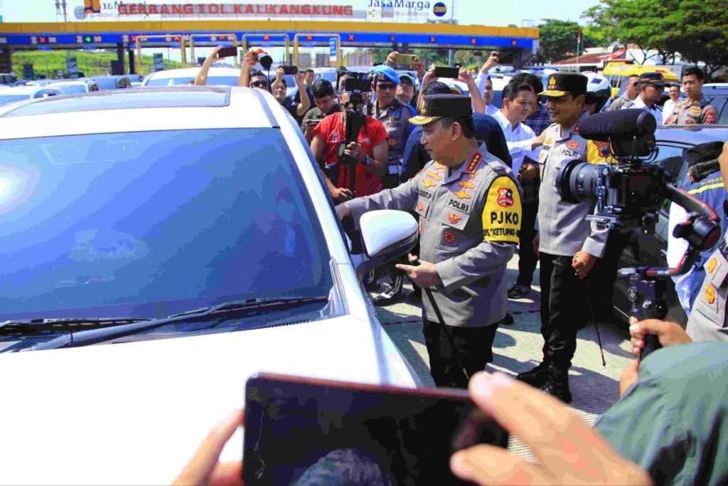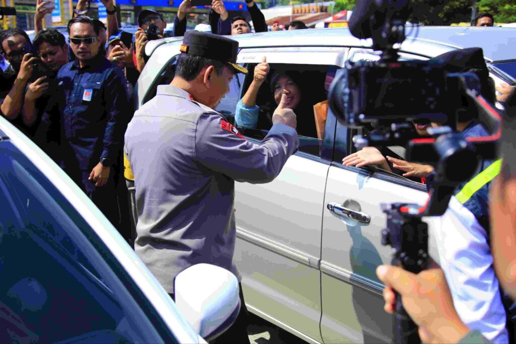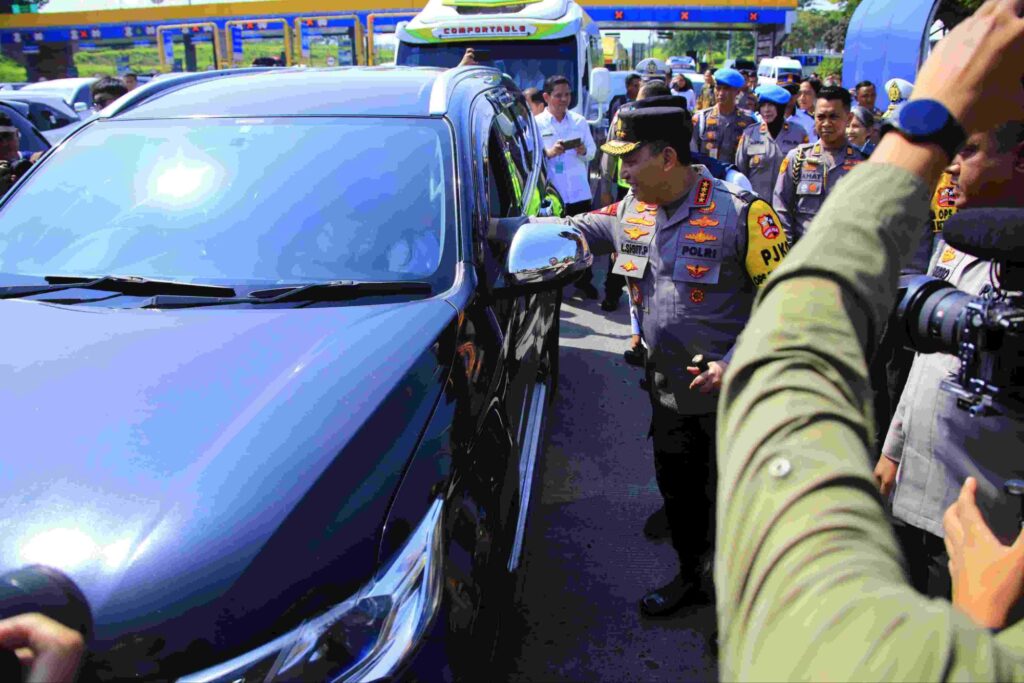 Kapolri Jenderal Pol. Listyo Sigit Prabowo melepas para pemudik pada penetapan one way nasional arus balik Lebaran 2025 di Gerbang Tol Kalikangkung.