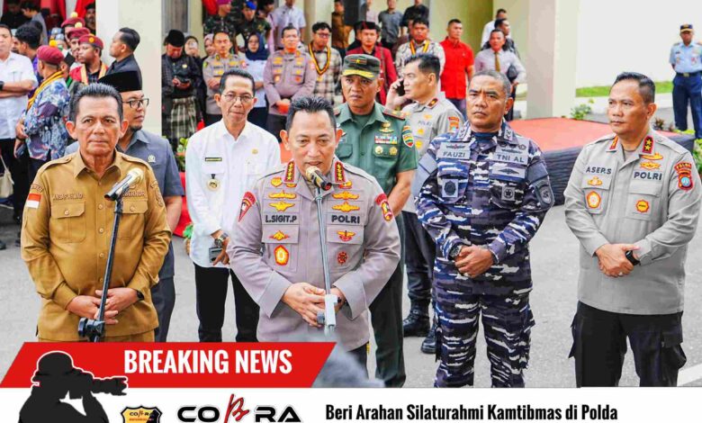 Kapolri Jenderal Listyo Sigit Prabowo memberikan pengarahan pada kegiatan ‘Silaturahmi Kamtibmas’ di Polda Kepri, Senin (14/4/2025).