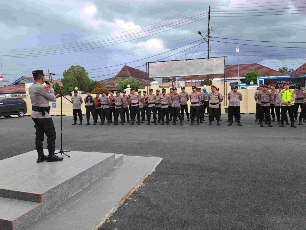 Dalam sambutannya, Kapolres melalui, Wakapolres menekankan pentingnya profesionalisme dan integritas dalam menjalankan tugas. Ia mengingatkan bahwa pengamanan TPS merupakan tanggung jawab besar yang memerlukan kesiapan fisik dan mental. Kalian adalah ujung tombak dalam memastikan pemilu berjalan dengan aman, tertib, dan lancar. Tetaplah menjaga sikap humanis dalam berinteraksi dengan masyarakat, serta selalu waspada terhadap potensi gangguan keamanan