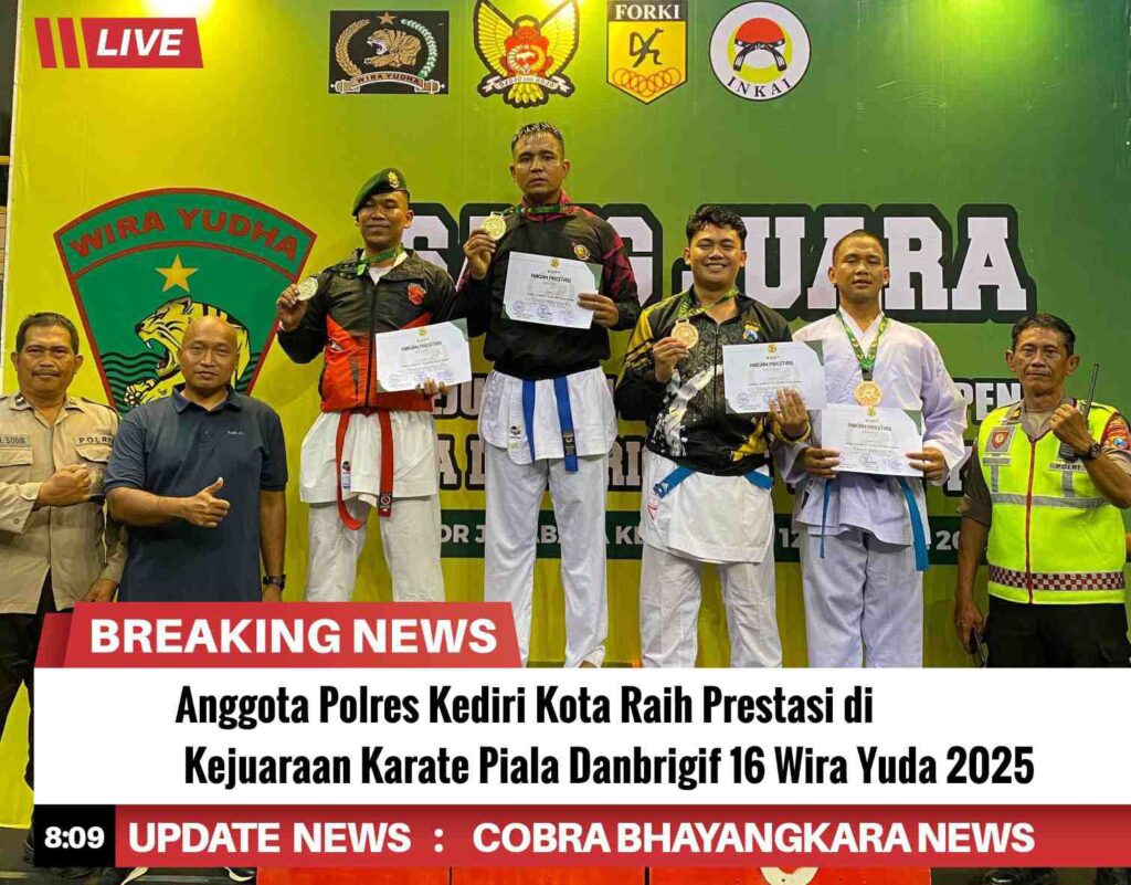 Dalam Kejuaraan Karate Kediri Open Piala Danbrigif 16/Wira Yudha Tahun 2025 tersebut salah satu Anggota terbaik dari Polres Kediri Kota, Bripda Dhea Okta Putra Pratama meraih juara 3 di kelas kumite +75kg (TNI/POLRI) putra.