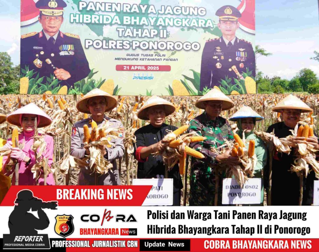 Suasana hangat penuh semangat mewarnai pelaksanaan Panen Raya Jagung Hibrida Bhayangkara Tahap II yang digelar pada Senin (21/4/2025) di kawasan Jl. Sekar Pudak, Kelurahan Purbosuman, Kecamatan/Kabupaten Ponorogo.