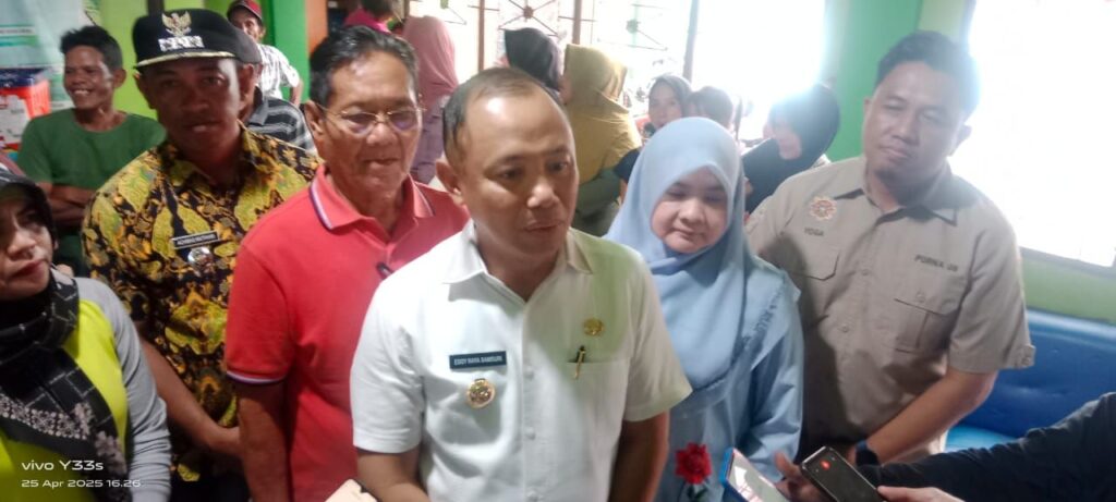 H.Eddy Raya Samsuri, ST,.MM menyerahkan batuan kepada warga yang terdapak banjir. Jumat, (25/04/2025). Sore
