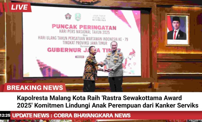 Rastra Sewakottama Award 2025 diberikan sebagai bentuk apresiasi atas komitmen Polresta Malang Kota Polda Jatim berkolaborasi dengan Pemkot Malang dalam melindungi anak perempuan dari ancaman kanker serviks melalui program vaksinasi Human Papilloma Virus (HPV) gratis.