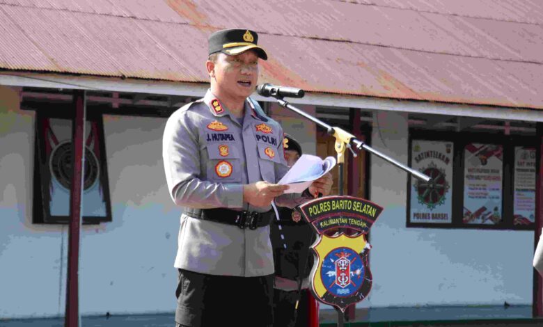 Kegiatan tersebut dipimpin langsung Kapolres Barsel AKBP Jecson R. Hutapea, S.I.K., M.H. dan didampingi oleh Wakapolres Kompol M. Tommy Palayukan, S.H., S.I.K., M.Si.