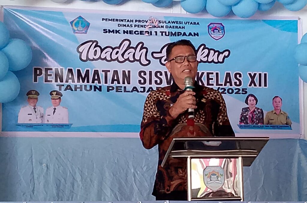 Kepala SMKN 1 Tumpaan, Drs. Fredy Lengkong, dalam sambutannya menegaskan bahwa kesederhanaan dalam pelaksanaan penamatan tidak mengurangi nilai dan semangat acara.