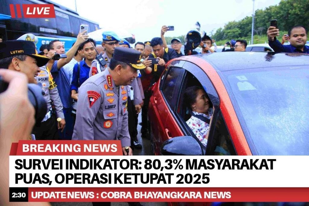 Operasi Ketupat 2025 yang digelar oleh Polri untuk mengamankan arus mudik dan balik Lebaran mendapat sambutan positif dari masyarakat. Survei terbaru dari Indikator Politik Indonesia menunjukkan bahwa 80,3 persen responden menyatakan puas terhadap pelaksanaan operasi tersebut.