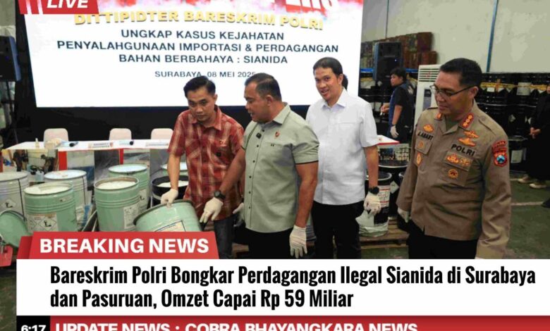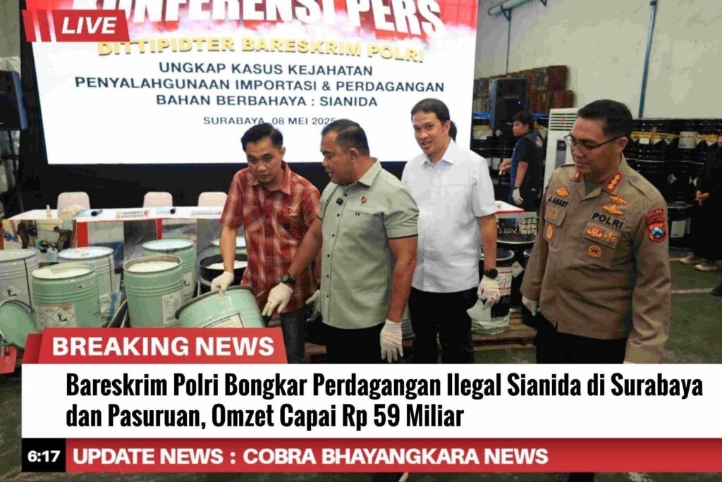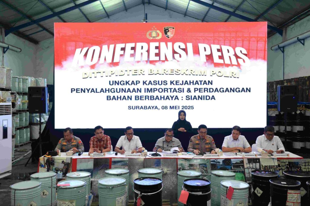 Direktorat Tindak Pidana Tertentu (Dittipidter) Bareskrim Polri berhasil mengungkap kasus perdagangan ilegal sianida di dua lokasi, di Jawa Timur, yakni di Surabaya dan Pasuruan.