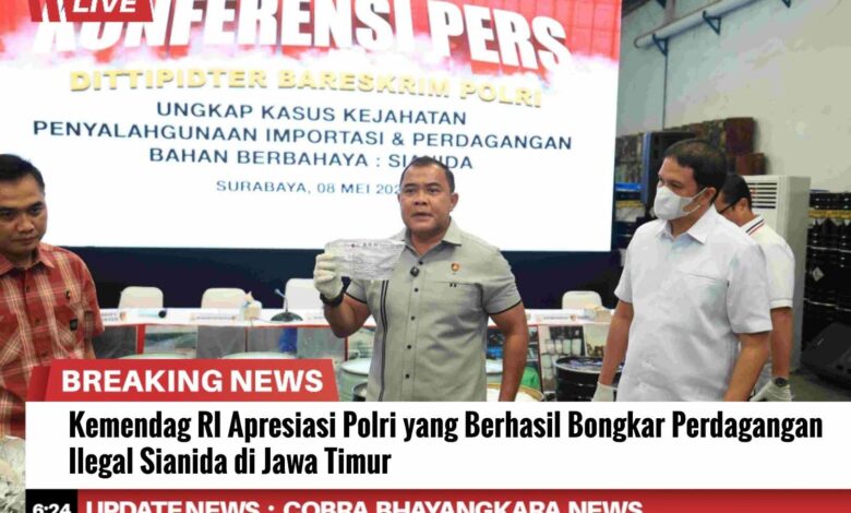 Direktur Tertib Niaga Ditjen Perlindungan Konsumen Kemendag RI, Mario Josko memberikan apresiasi kepada Kepolisian yang telah berhasil mengungkap perdagangan ilegal Sianida di Surabaya dan Pasuruan, Jawa Timur.