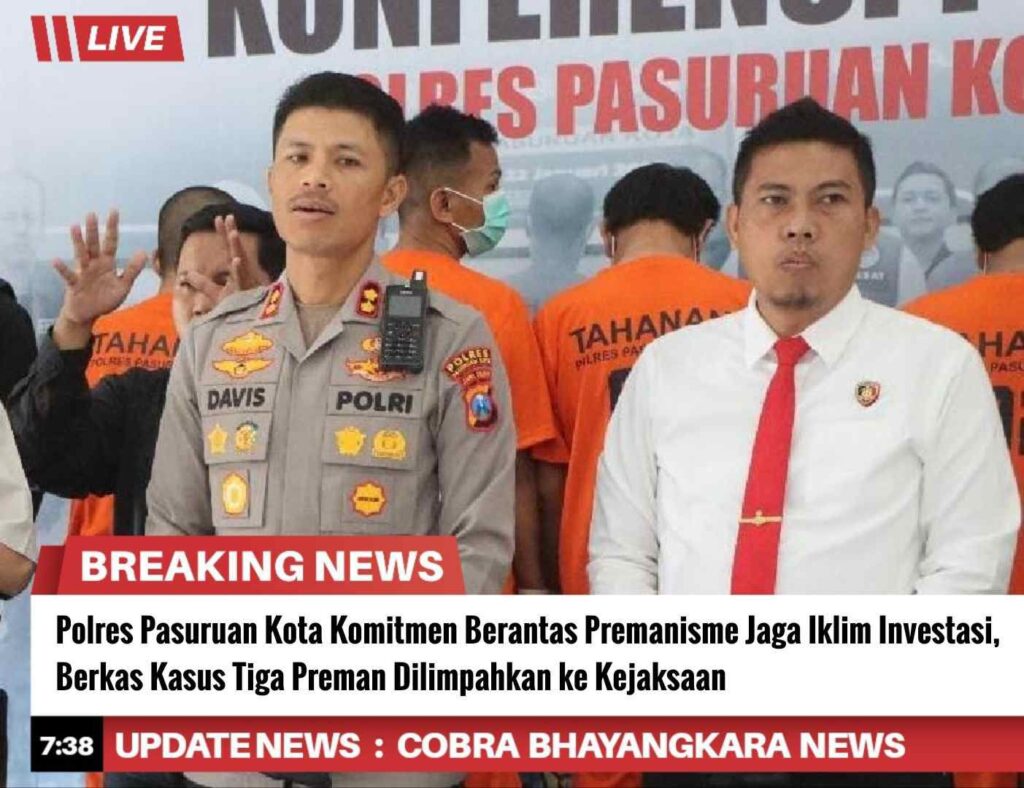 Hal itu menjadi sinyal tegas komitmen Polres Pasuruan Kota Polda Jatim dalam memberantas segala bentuk aksi premanisme yang meresahkan masyarakat dan dunia usaha.