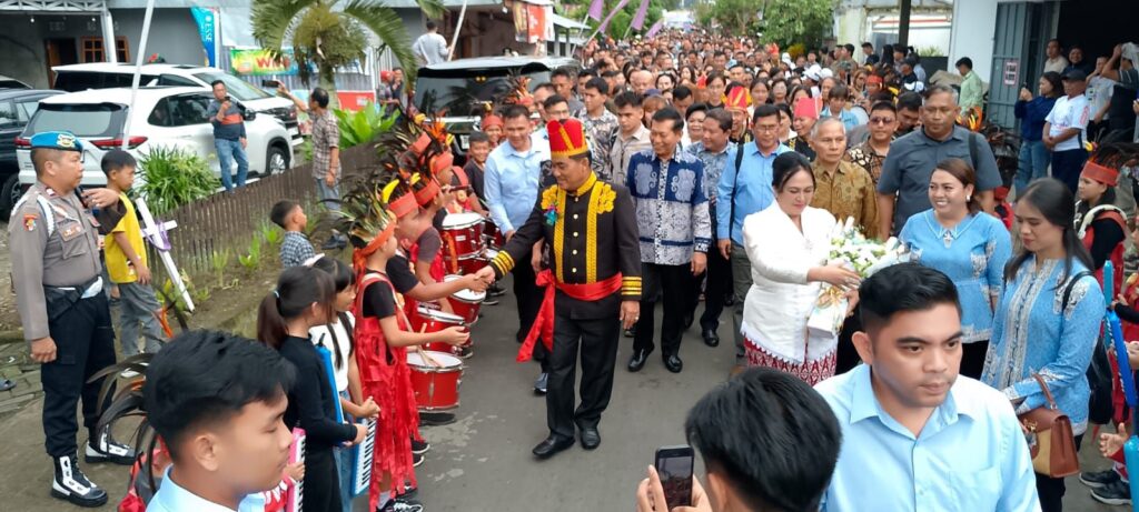 Acara dibuka dengan ibadah syukur yang berlangsung tertib dan memberkati juga diiringi dengan Lagu-lagu rohani khas Minahasa seperti “Opo Wananatase” menggema di tengah ribuan tamu yang hadir, sementara tarian tradisional turut memeriahkan suasana.