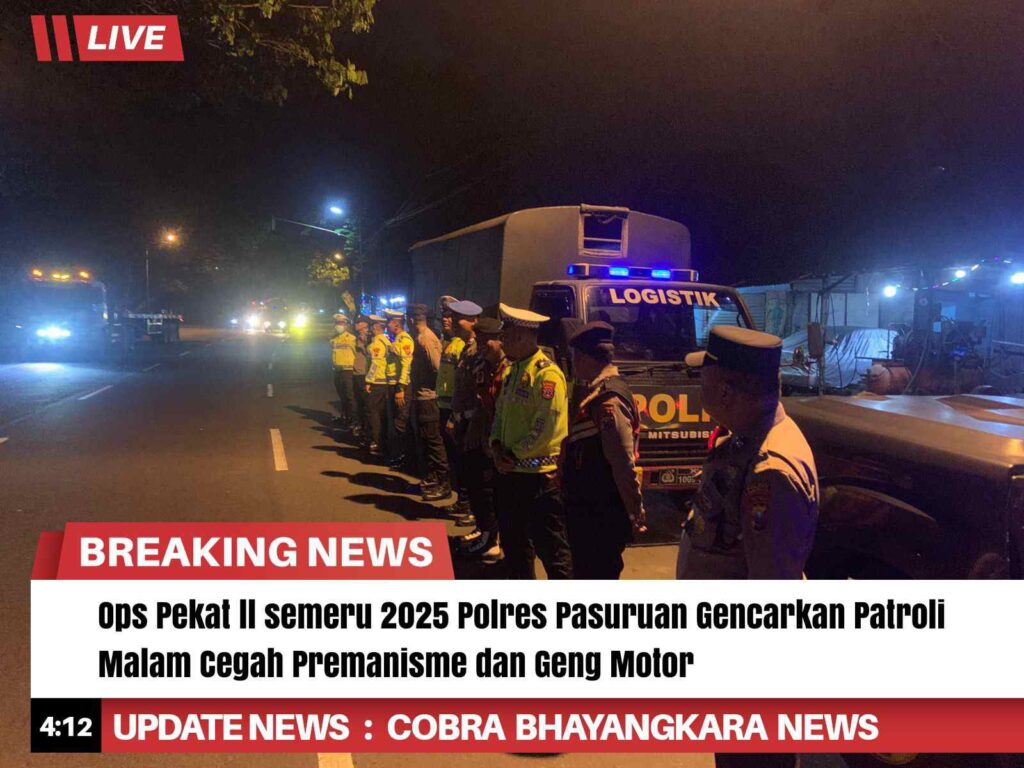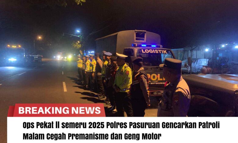 Dalam rangka menciptakan situasi kamtibmas yang kondusif, Polres Pasuruan Polda Jatim melaksanakan patroli malam dalam Operasi Pekat II Semeru 2025.