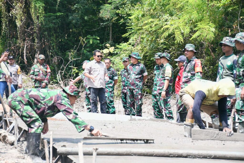 Lanjut, ia pun memberikan contoh terhadap sasaran dalam TMMD ke-124 Kodim 0810/Nganjuk yang diharapkan mampu berdampak luas bagi masyarakat. Salah satunya sasaran pengerasan jalan yang akan menjadi salah satu akses penghubung antara Kecamatan Lengkong dan Ngluyu.