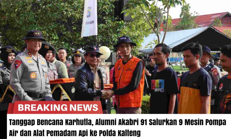 Polda Kalimantan Tengah (Kalteng) menerima bantuan alat pemadam kebakaran hutan dan lahan (Karhutla) dari keluarga besar alumni Akademi Angkatan Bersenjata Republik Indonesia (Akabri) 1991.