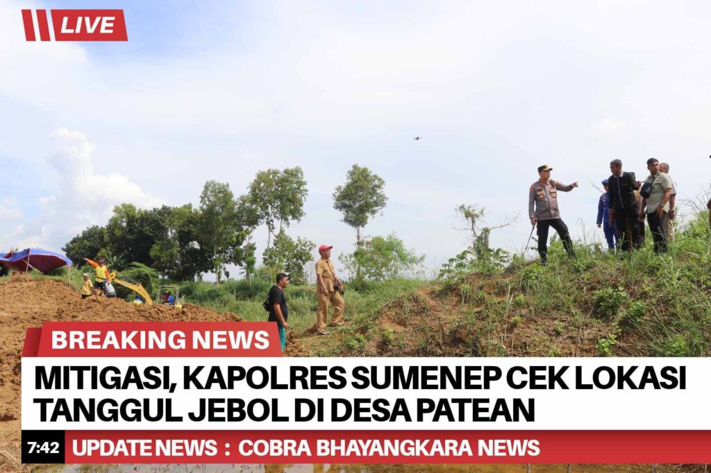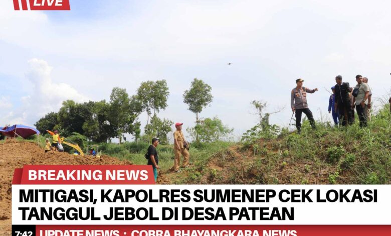 Kapolres Sumenep, AKBP Rivanda, S.I.K., bersama jajaran melakukan peninjauan langsung ke lokasi tanggul sungai yang jebol di wilayah Desa Patean, Kecamatan Batuan, Kabupaten Sumenep.