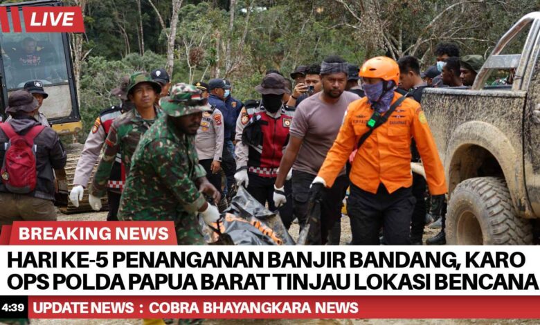 Manokwari, Papua Barat-Memasuki hari kelima penanganan bencana banjir bandang di Kali Meyof, Kampung Jim (Meyes), Distrik Catubouw, Kabupaten Pegunungan Arfak, berbagai upaya terus dilakukan untuk mempercepat proses pencarian dan evakuasi korban, Rabu (21/05/2025).