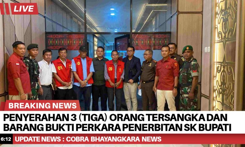 Penyerahan 3 (Tiga) Orang Tersangka Dan Barang Bukti Perkara Penerbitan SK Bupati Barut Tentang IUP Tahun 2009 – 2012