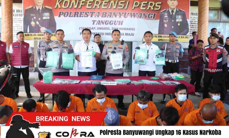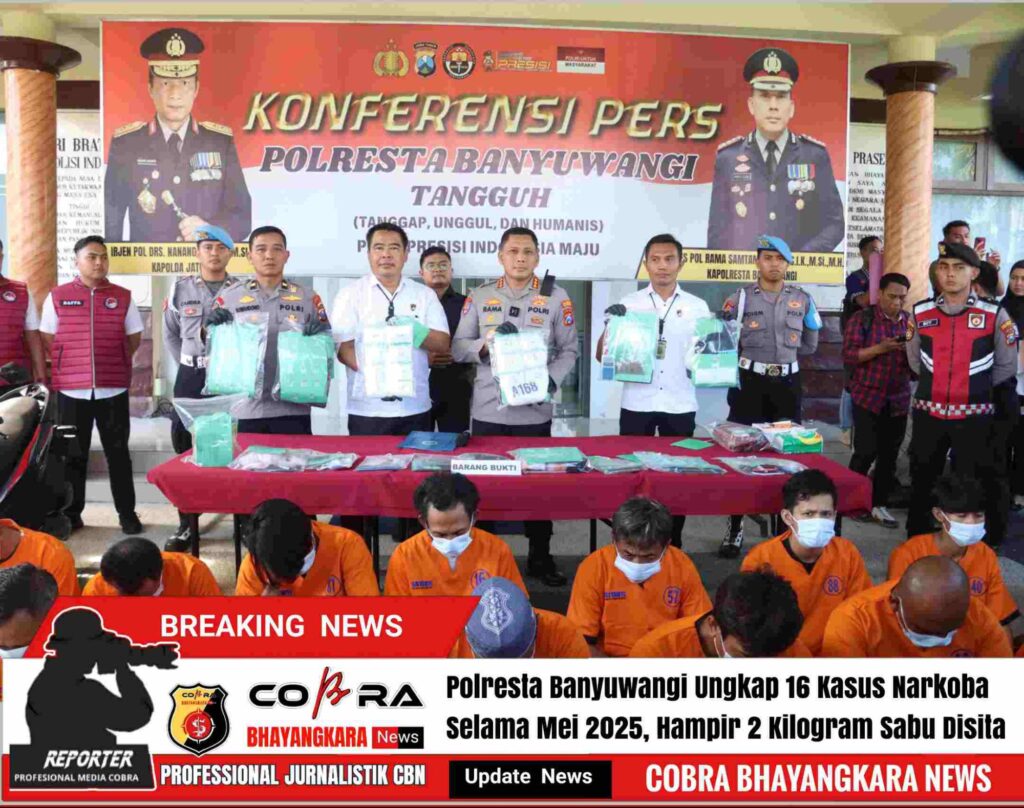 Kepolisian Resor Kota (Polresta) Banyuwangi, Polda Jawa Timur, kembali menunjukkan komitmennya dalam memerangi peredaran gelap narkotika. Dalam konferensi pers yang digelar di halaman Mapolresta Banyuwangi, Rabu (28/5/2025), Kapolresta Banyuwangi Kombes Pol Rama Samtama Putra, didampingi Kasat Narkoba AKP Nanang Sugiyono, S.H., M.H., mengungkap hasil pengungkapan kasus narkoba selama bulan Mei 2025.