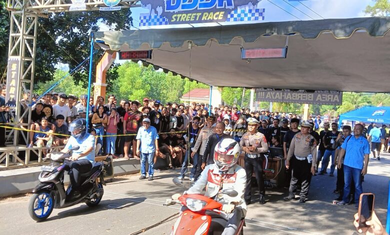 Kegiatan semakin meriah dengan pertunjukan drag race yang dilakukan oleh peserta dari berbagai komunitas motor.