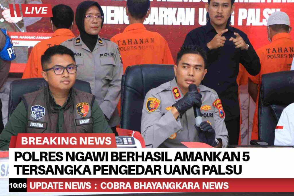“Hal ini terungkap, bermula dari keresahan masyarakat, terkait beredarnya uang palsu di wilayah Ngawi,” tutur Kapolres Ngawi AKBP Charles Pandapotan Tampubolon saat konferensi pers di ruang Guyup Polres Ngawi, pada Jumat (30/5/2025)