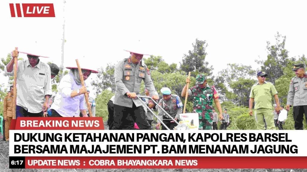 Dalam rangka mendukung dan mewujudkan Asta Cita Program Pemerintahan Presiden Republik Indonesia khusus pada ketahanan pangan Polres Barito Selatan (Barsel) Kepolisian Daerah (Polda) Kalimantan Tengah (Kalteng) melaksanakan penanaman jangun bersama Dinas Ketahanan Pangan dan Pertanian Barsel dan PT Bumi Agro Makmur (BAM) dilahan milik warga masyarakat Desa Pamangka. Kecamatan Dusun Selatan (Dusel) Jalan Urbanus Marcun. Senin, (02/06/2025).