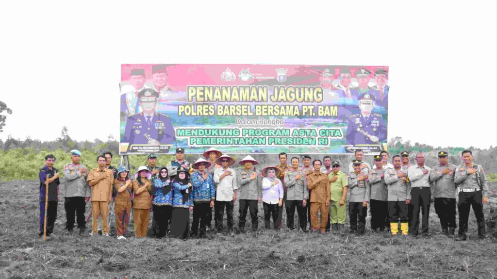 Giat tersebut dipimpin langsung Kapolres Barsel AKBP Jecson R Hutapea S.I.K.,M.H. Turut hadir Kepala Dinas Ketahanan Pangan dan Pertanian Barsel, Pejabat utama Polres, manajemen PT Bumi Agro Makmur (BAM), Camat Dusun Selatan, Petugas Penyuluh Pertanian, Bhabinkamtibmas dan Babinsa setempat serta masyarakat sekitar Area lahan.