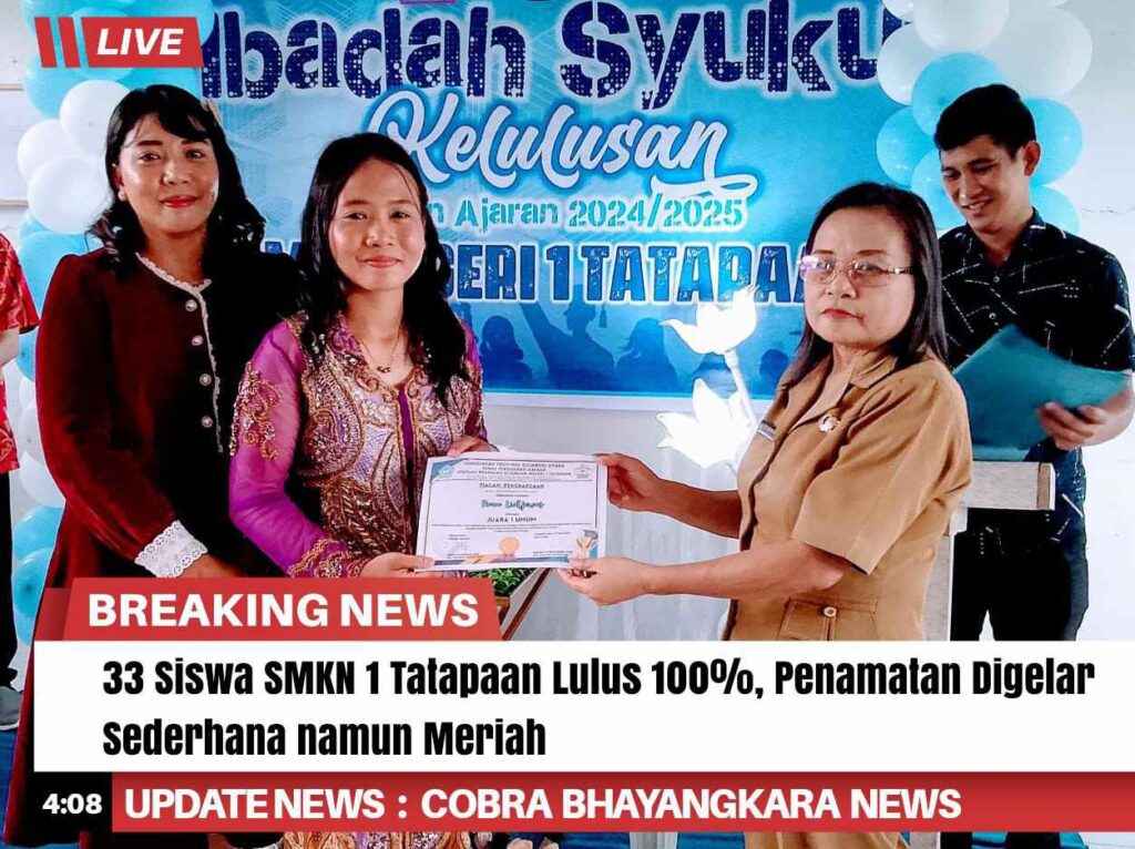 Acara ditutup dengan sesi foto bersama, penuh senyuman dan rasa syukur atas pencapaian yang membanggakan ini. SMKN 1 Tatapaan kembali mencetak lulusan-lulusan muda yang siap menapaki masa depan.