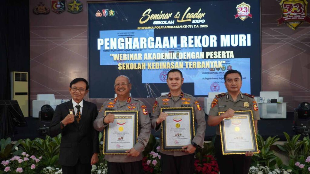 Sekolah Staf dan Pimpinan Pertama (Sespimma) Lemdiklat Polri Angkatan ke-73 meraih penghargaan dari Museum Rekor-Dunia Indonesia (MURI) atas penyelenggaraan webinar dengan jumlah sekolah kedinasan terbanyak. Rekor ini dicapai melalui kegiatan bertajuk Seminar Sekolah dan Leader Expo dengan tema “Polisi dan Masyarakat: Mewujudkan Kepemimpinan Humanis dalam Bingkai Presisi.”