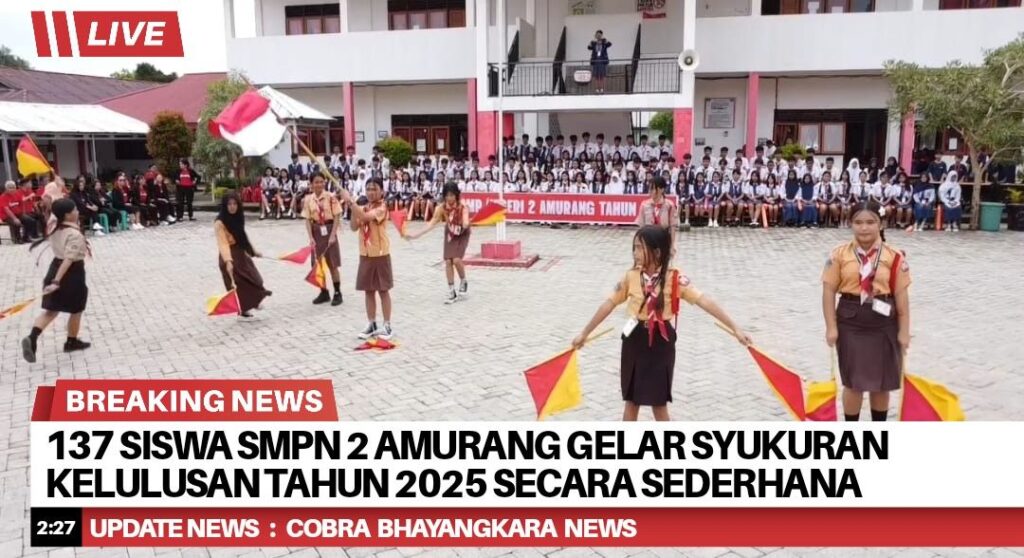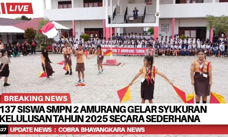 Sebanyak 137 siswa SMP Negeri 2 Amurang melaksanakan syukuran kelulusan pada (4/6/25) dalam suasana penuh sukacita dan kegiatan penamatan tahun ini digelar secara sederhana namun penuh makna, diawali dengan ibadah syukur yang dipimpin oleh Pdt. Megawati Rantung, S.Th.