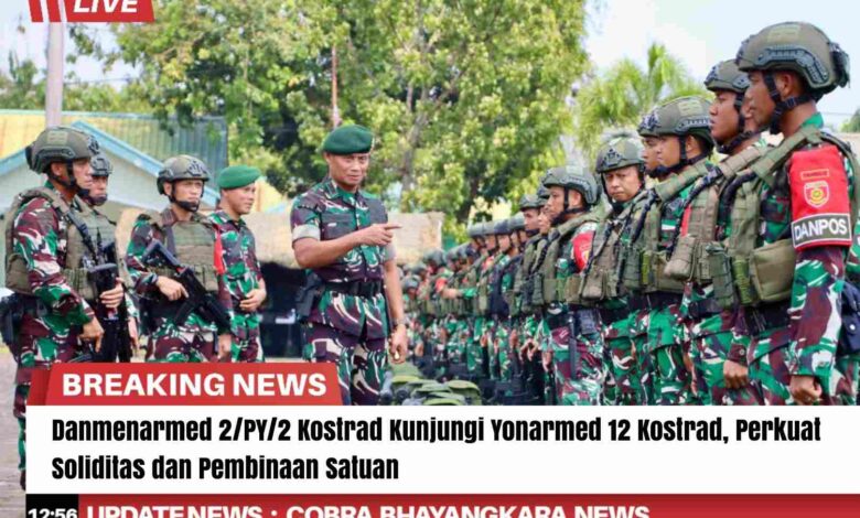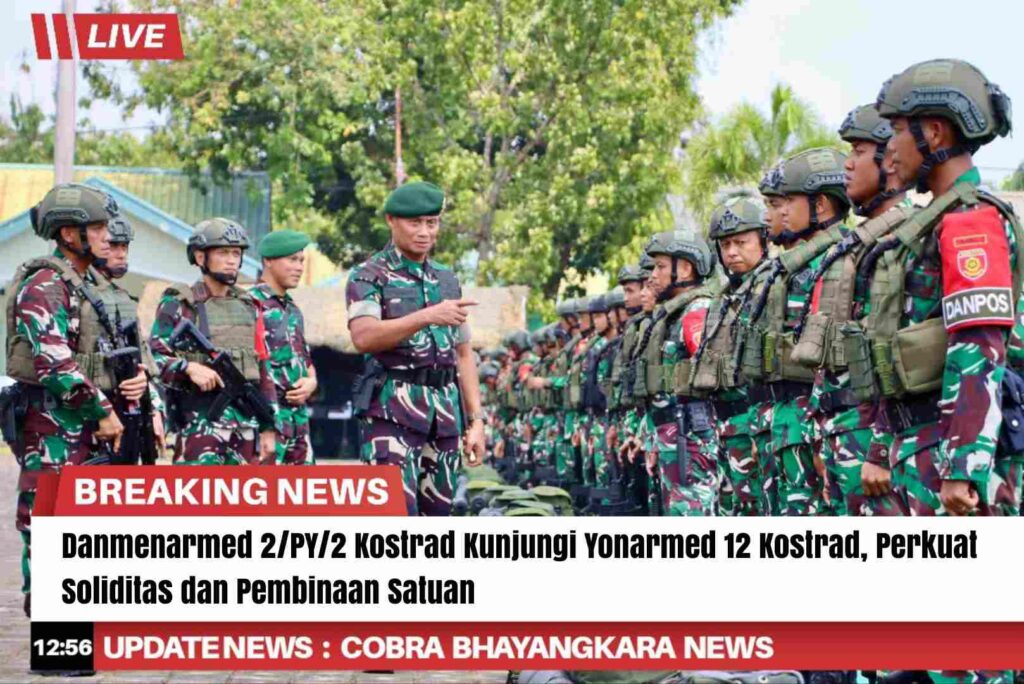 Komandan Resimen Armed 2/PY/2 Kostrad, Letkol Arm Rohmad, S.Sos., M.Tr (Han) didampingi Ketua Persit KCK Cabang XXIII Menarmed 2 Koorcab Divif 2 PG Kostrad, Ny. Heni Rohmadi, beserta rombongan melaksanakan kunjungan kerja ke Yonarmed 12 Kostrad, yang disambut hangat oleh keluarga besar satuan. Kegiatan ini merupakan bentuk perhatian dan kepedulian pimpinan terhadap satuan jajaran. (Rabu, 04/06/2025)