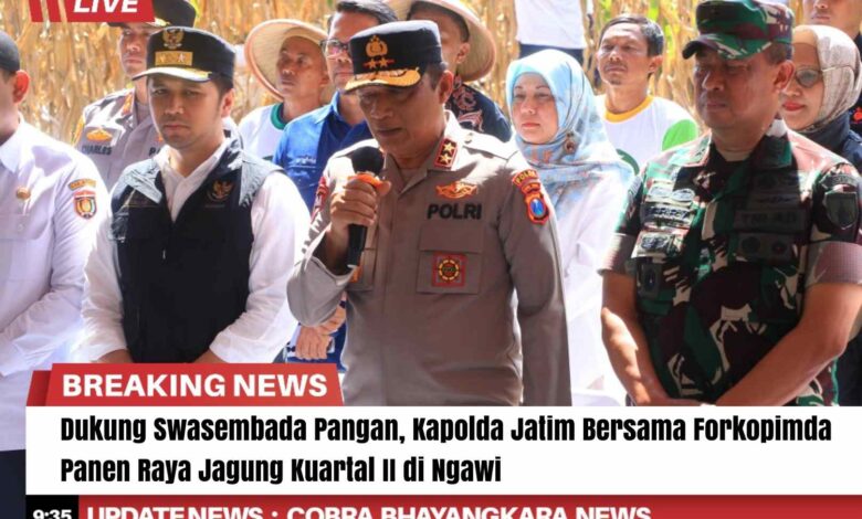 Kapolda Jatim, Irjen Pol Nanang Avianto mengatakan panen raya jagung di Kabupaten Ngawi ini adalah salah satu wujud dari upaya mendukung swasembada pangan seperti yang dicanangkan Presiden RI Prabowo Subianto.