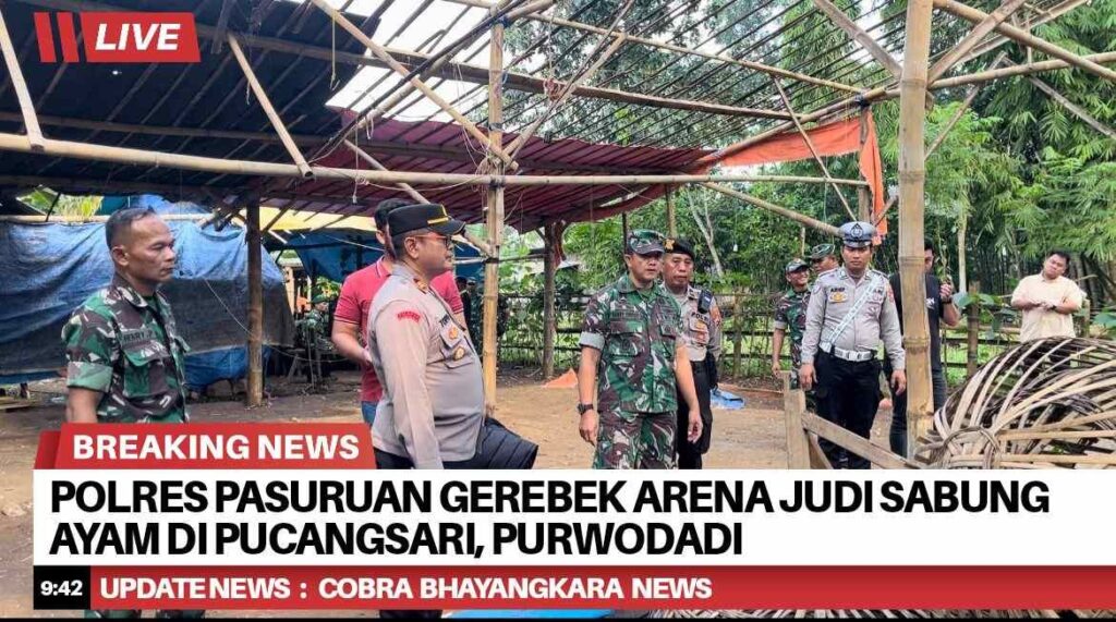 Aparat gabungan dari Polres Pasuruan, Polsek Purwodadi, TNI, dan perangkat desa berhasil menggagalkan aktivitas perjudian sabung ayam yang berlangsung di pekarangan kosong milik warga bernama Sdr. Hadi, berlokasi di Dusun Sidomoro Lor, RT 06 RW 03, Desa Pucangsari, Kecamatan Purwodadi, Kabupaten Pasuruan, Kamis (5/6/2025) sekitar pukul 14.45 WIB.