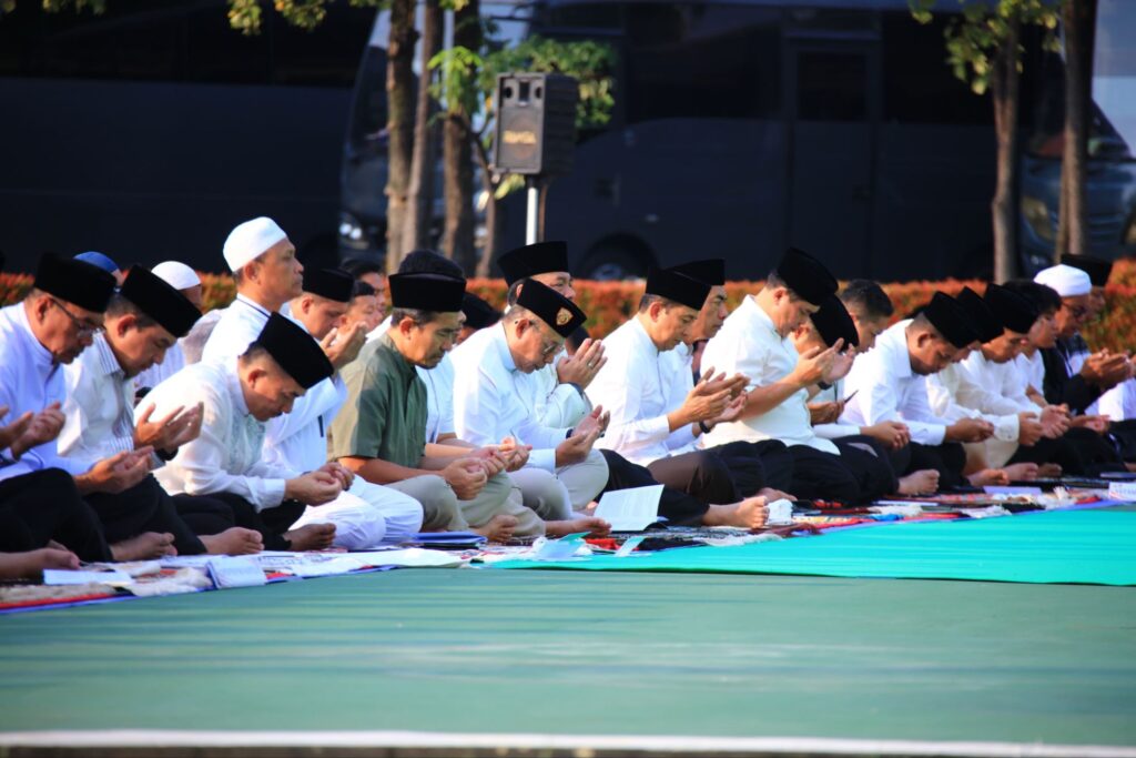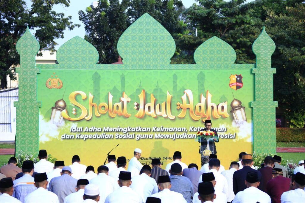 Mabes Polri menggelar salat Idul Adha 1446 Hijriah di Lapangan Bhayangkara, Jakarta Selatan. Salat dipimpin oleh Ust. Muammar Samsudin yang merupakan Imam Masjid Baitul Hikmah Syurthah Mabes Polri dan Khatib Prof. Dr. Made Saihu M. Pd.