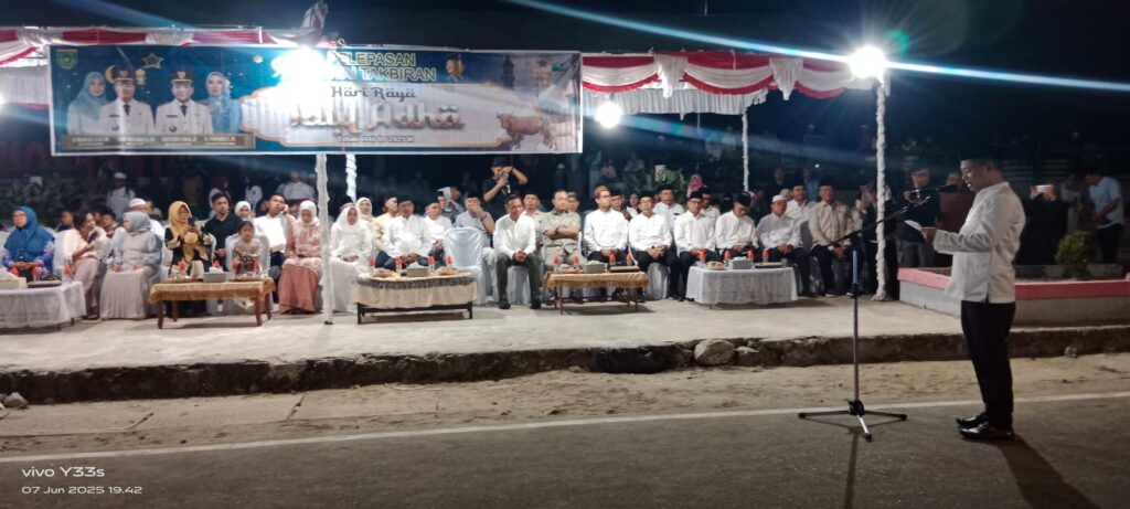 Kegiatan ini juga turut dihadiri oleh jajaran Forkopimda dan dibuka oleh Bupati H. Eddy Raya Samsuri, ST,.MM Dalam sambutannya, ia mengajak untuk menjadikan hari raya Idul Adha sebagai ajang berserah diri seperti dicontohkan oleh Nabi Ismail dan Nabi Ibrahim.