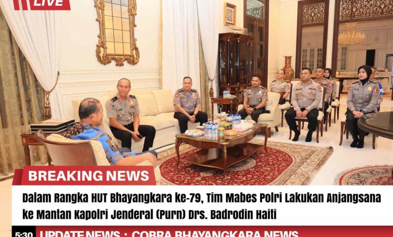 Menyambut peringatan Hari Ulang Tahun Bhayangkara ke-79, Kepolisian Negara Republik Indonesia melalui Tim dari Mabes Polri melaksanakan kegiatan anjangsana sebagai bentuk penghormatan dan silaturahmi kepada para purnawirawan Polri. Salah satu kunjungan dilakukan ke kediaman Jenderal (Purn) Drs. Badrodin Haiti, yang merupakan Mantan Kapolri ke-23.