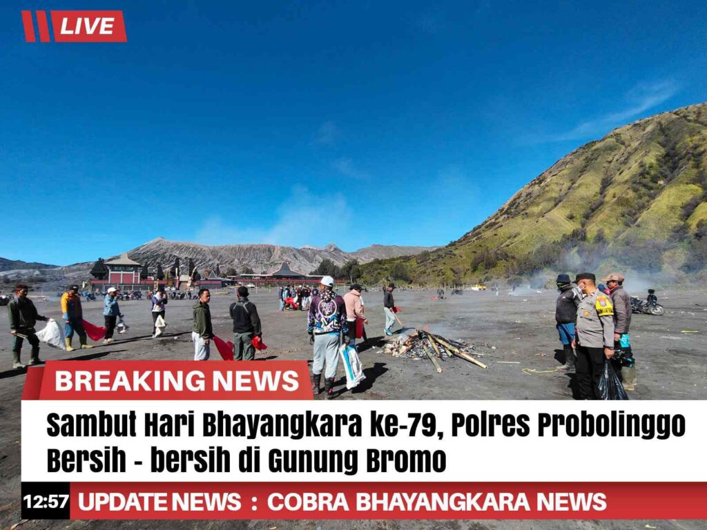 Dalam rangka menyambut Hari Bhayangkara ke-79, Polres Probolinggo melaksanakan kegiatan bakti sosial membersihkan Taman Nasional Bromo Tengger Semeru, Jum’at (13/6/2025).