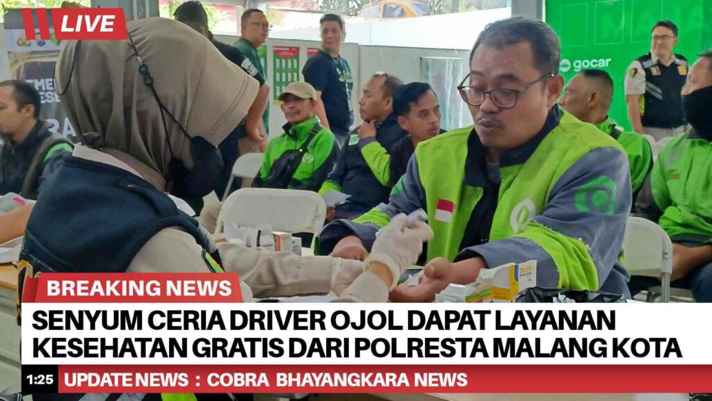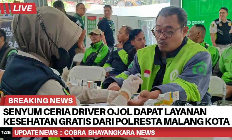 Senyum Ceria Driver Ojol Dapat Layanan Kesehatan Gratis dari Polresta Malang Kota Jelang Hari Bhayangkara ke -79