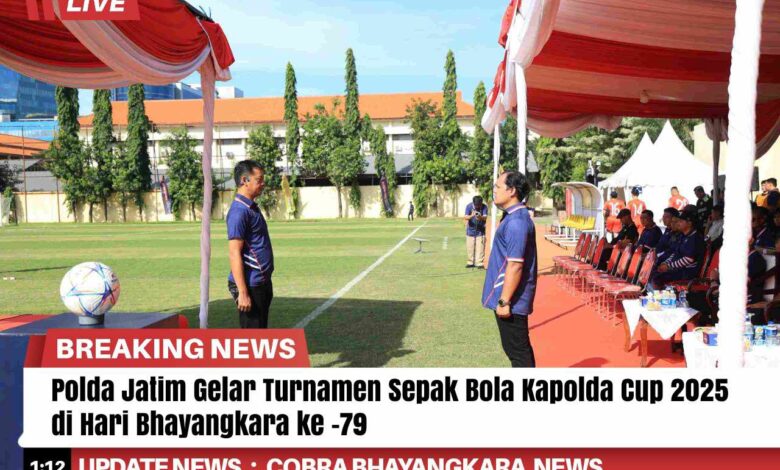 Kepala Kepolisian Daerah Jawa Timur yang di wakili oleh Dirressiber Polda Jatim, Kombes Pol. R. Bagoes Wibisono H.K. S.I.K., M.Si resmi membuka turnamen sepak bola antar Satuan Kerja (Satker) Polda Jatim dan Satuan Wilayah (Say)twil) Jajaran Polda Jatim, Minggu (15/6/2025).