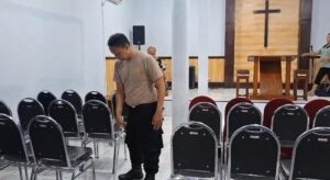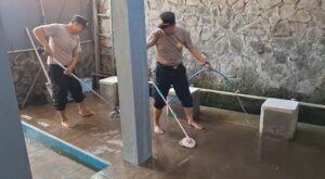 Sejumlah anggota polisi nampak memadati area tempat ibadah yang ada di seputaran Kecamatan Maesan Bondowoso. Dengan mengenakan kaos seragam warna coklat, para petugas ini terlihat sedang menyapu hingga mengepel lantai. Sementara sisanya mencabut rumput ilalang dan membersihkan pelataran area tempat ibadah. Selasa (17/06/2025).