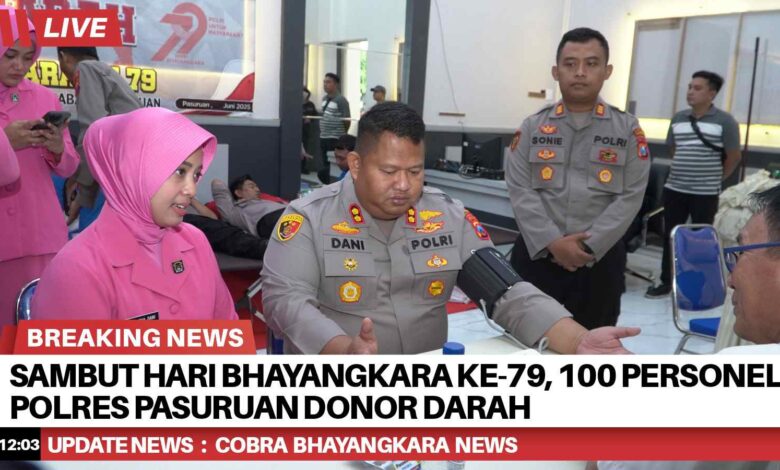 Menyambut Hari Bhayangkara ke-79 tahun 2025, Polres Pasuruan Polda Jatim menggelar kegiatan bakti kesehatan, donor darah.