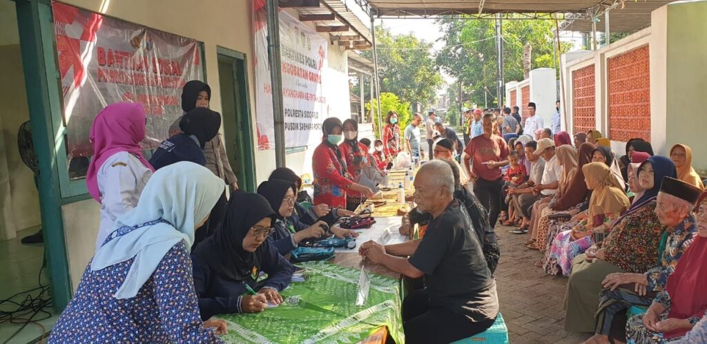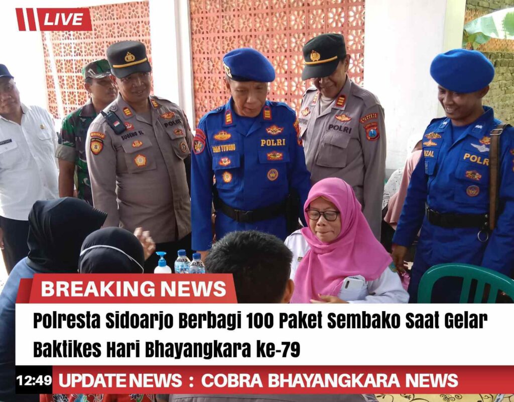 Menyambut Hari Bhayangkara ke-79, Polresta Sidoarjo Polda Jatim menunjukkan komitmennya dengan mendekatkan diri kepada masyarakat, melalui kegiatan bakti kesehatan (Baktikes) berupa pengobatan gratis.